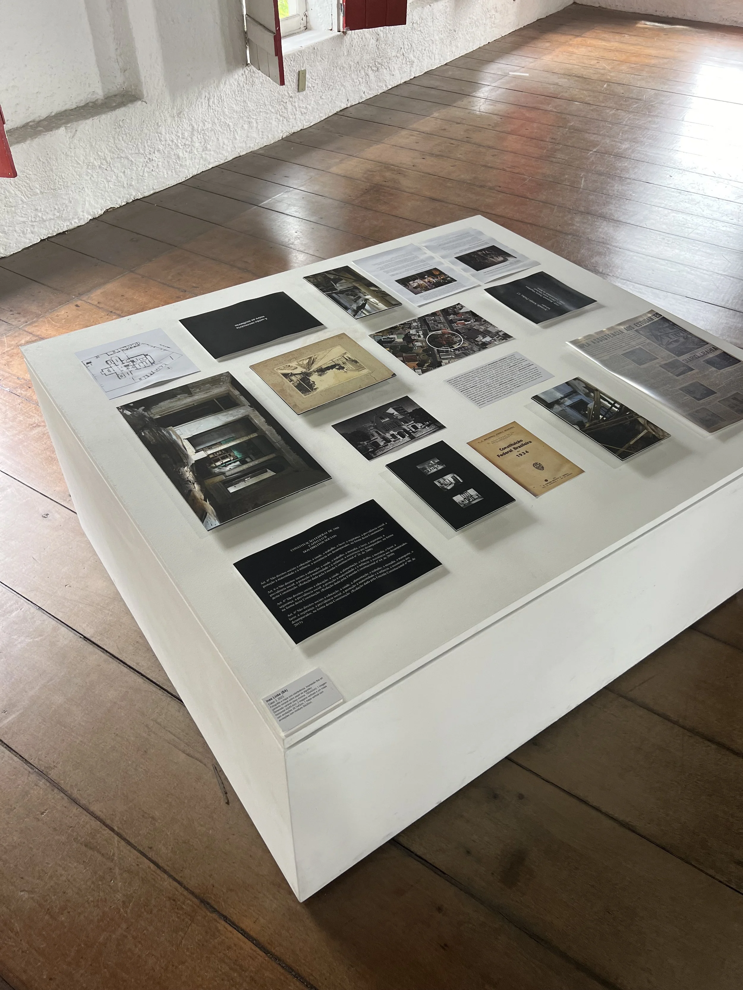 Fotos, mapas e documentos (editados), impressos em pimento mineral sobre papel de algodão, dimensões variáveis