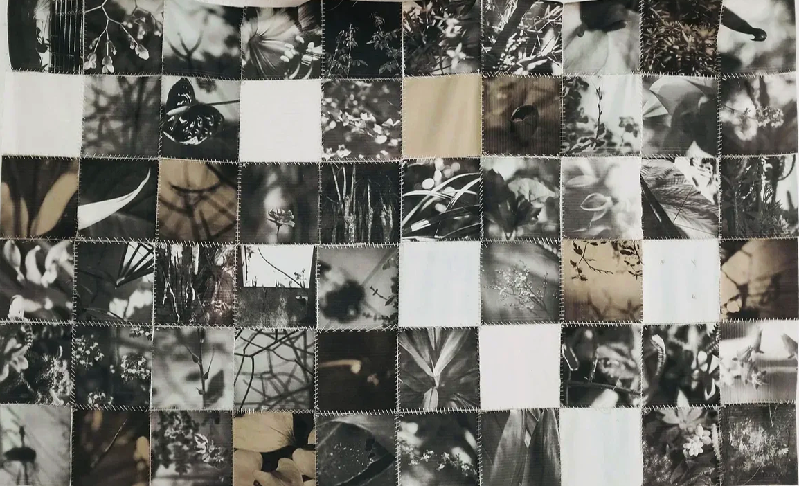 Fotografia digital impressa em tecido de algodão + costura e bordado