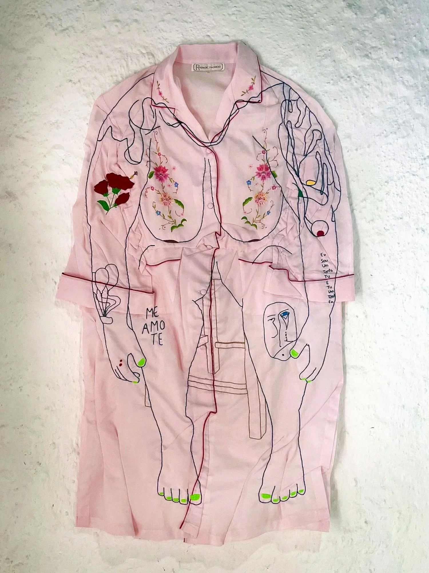 Bordado e costura à mão sobre tecido + linha de algodão e linha mista