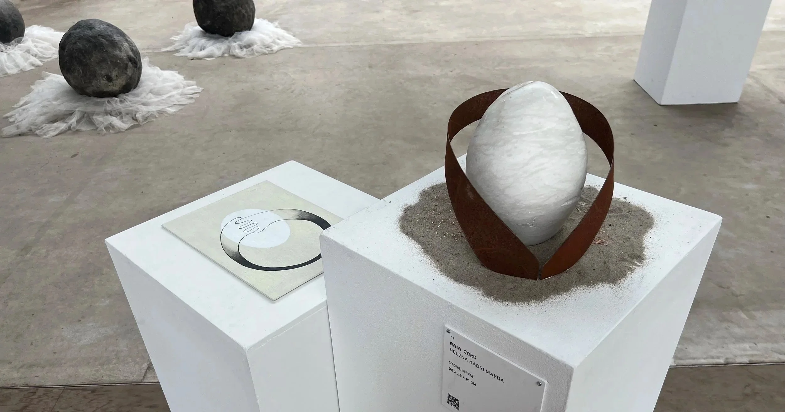 GAIA is the personification of Earth, the ancestral mother in the Greek mythology. Gaia symbolizes feminism and environmentalism quests. The mother of life embraces her egg, the core of our lives, protective, with reverence and caring love.