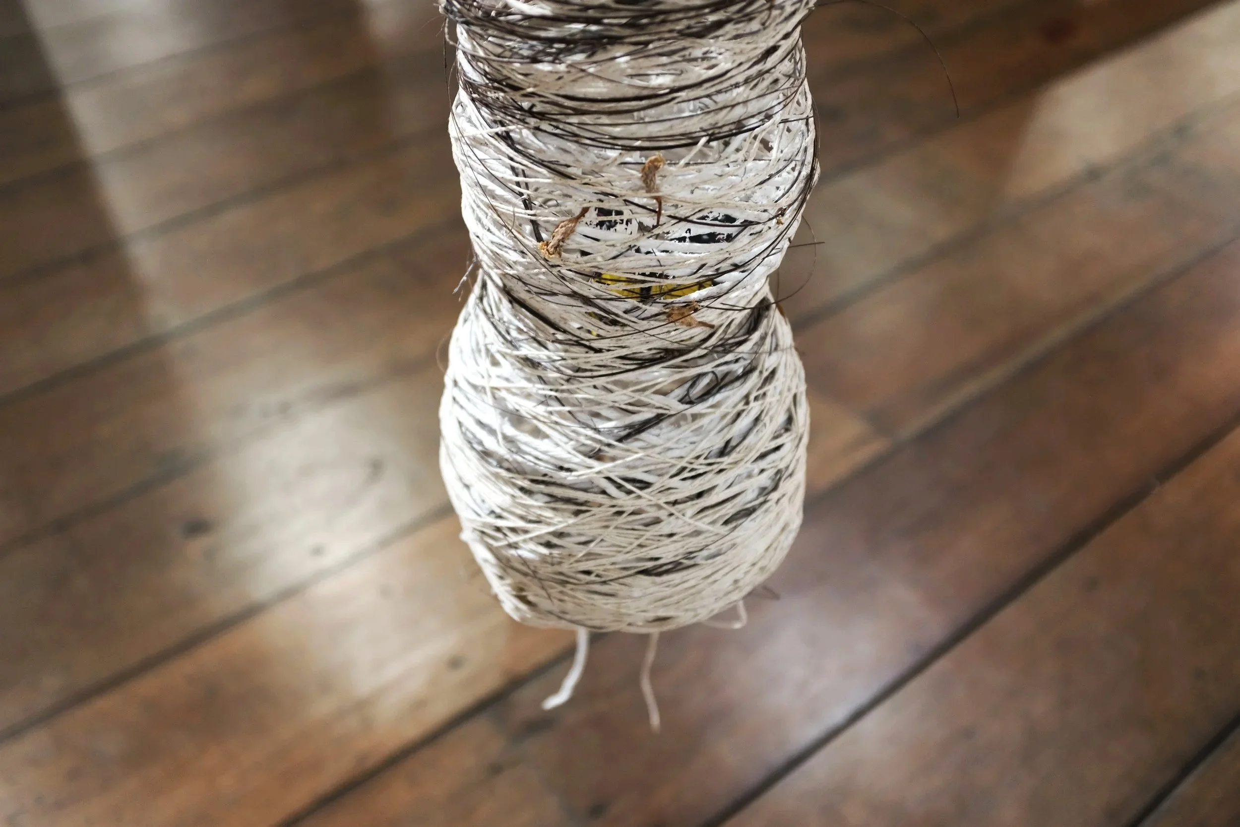 As “casulas” surgem de uma profunda pesquisa sobre ninhos e casulos, iniciada na fase experimental do meu doutorado em artes visuais na Escola de Belas artes da Universidade Federal da Bahia (2022). Tendo como o foco da pesquisa a matéria piaçava e suas espirais do tempo, cujo ciclo histórico de exploração inicia-se em 1500, em torno da corda, e, desde 1785, em torno da vassoura.