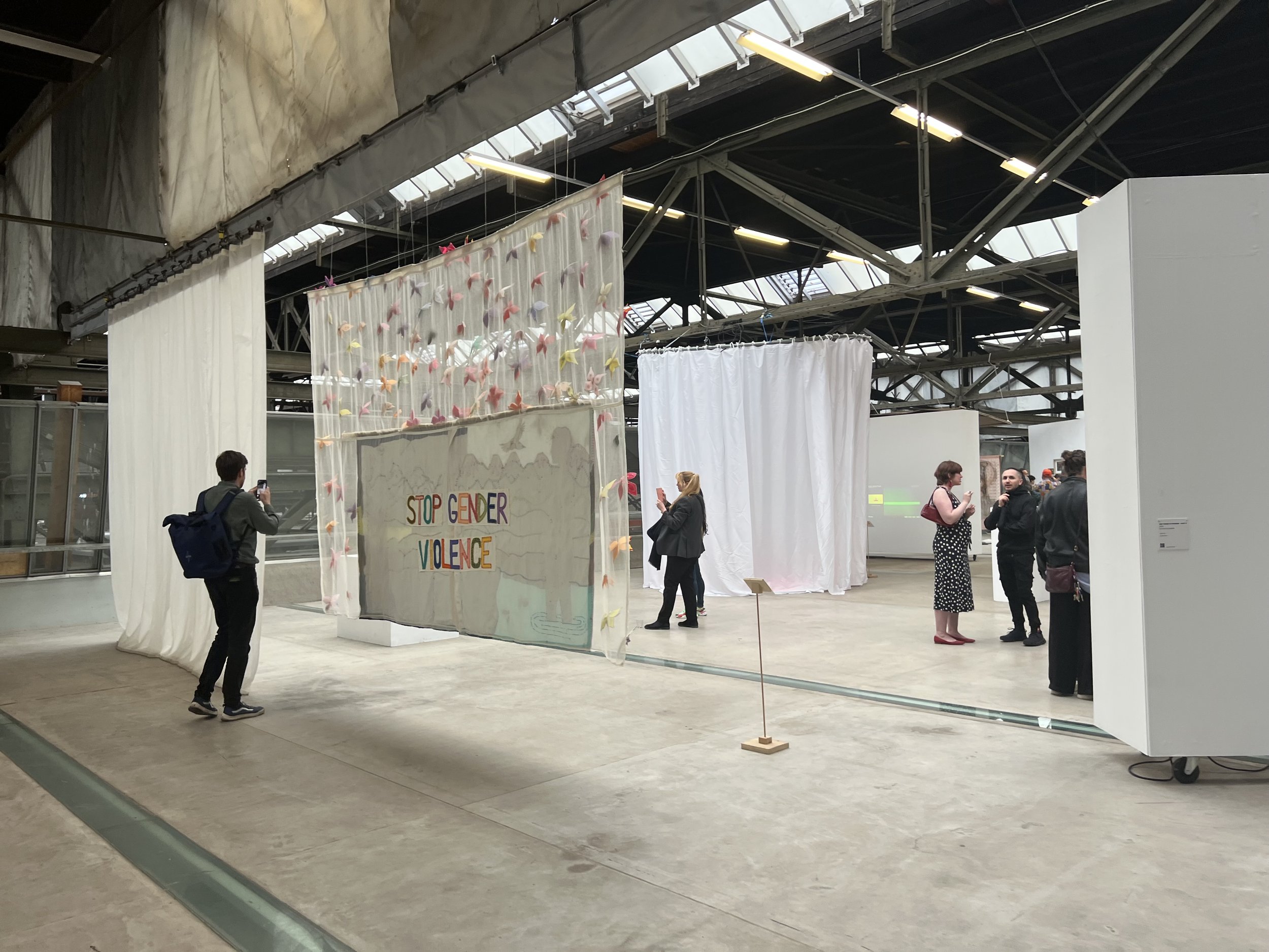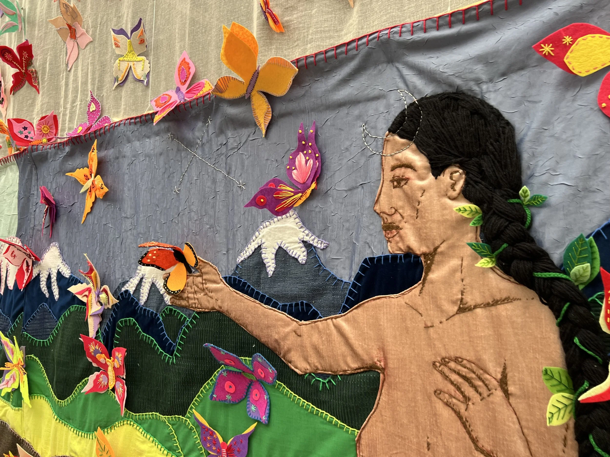 Designed and embroidered by a female textile collective, this “arpillera” displays over 120 butterflies, embroidered by more than 100 people during 16 political textile workshops. The Textile Collective held these workshops between November 2024 and March 2025 in several cities in the Netherlands to encourage reflection on, and action against gender-based violence worldwide. The Arpillera was inspired by two symbols of feminist resistance in the fight for fundamental equality and human rights: the Chilean arpillera, a political textile that emerged as an expression of resistance against the violent civil-military dictatorship of A. Pinochet (1973-1990), and the butterflies, in memory of the Mirabal sisters from the Dominican Republic, known as ‘the butterflies’, murdered during the military dictatorship of R. Trujillo (1930-1961).