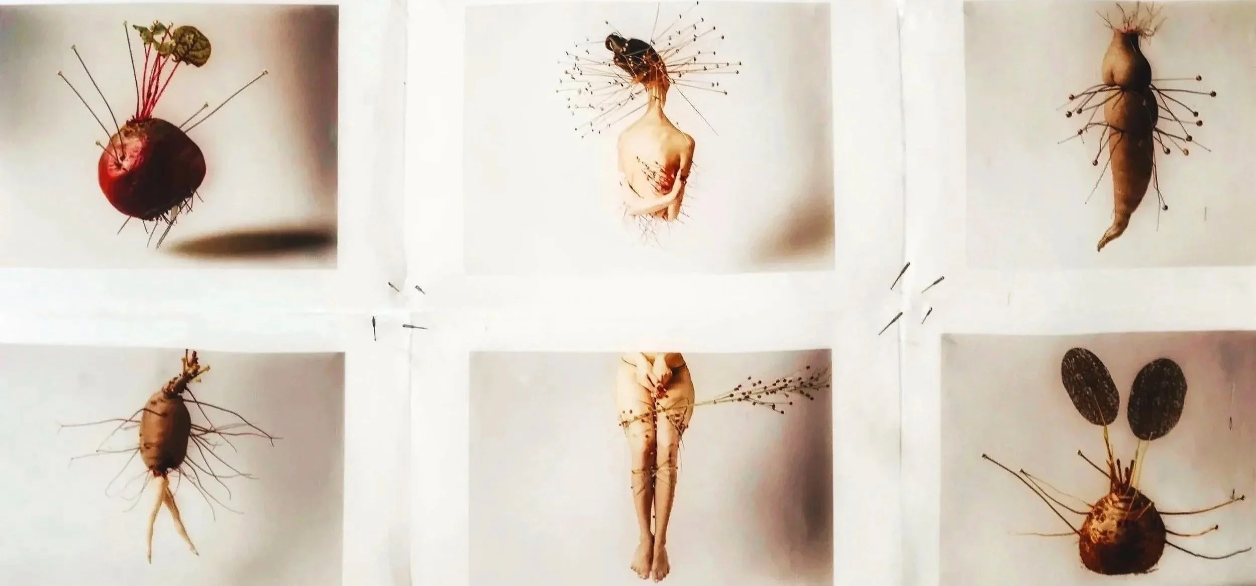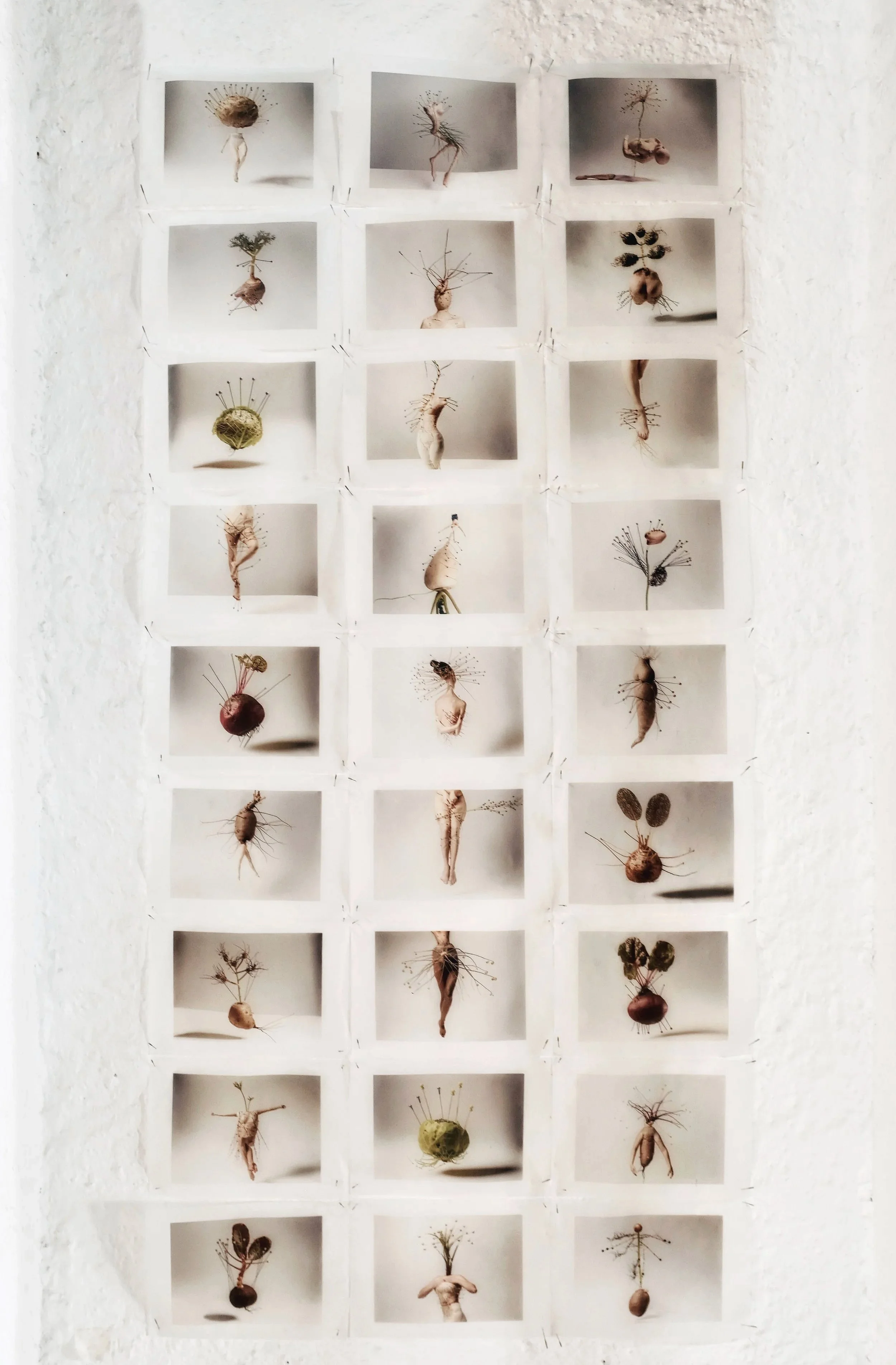 Fotografias digitais impressas com pigmentos minerais sobre papel vegetal + agulhas de máquina