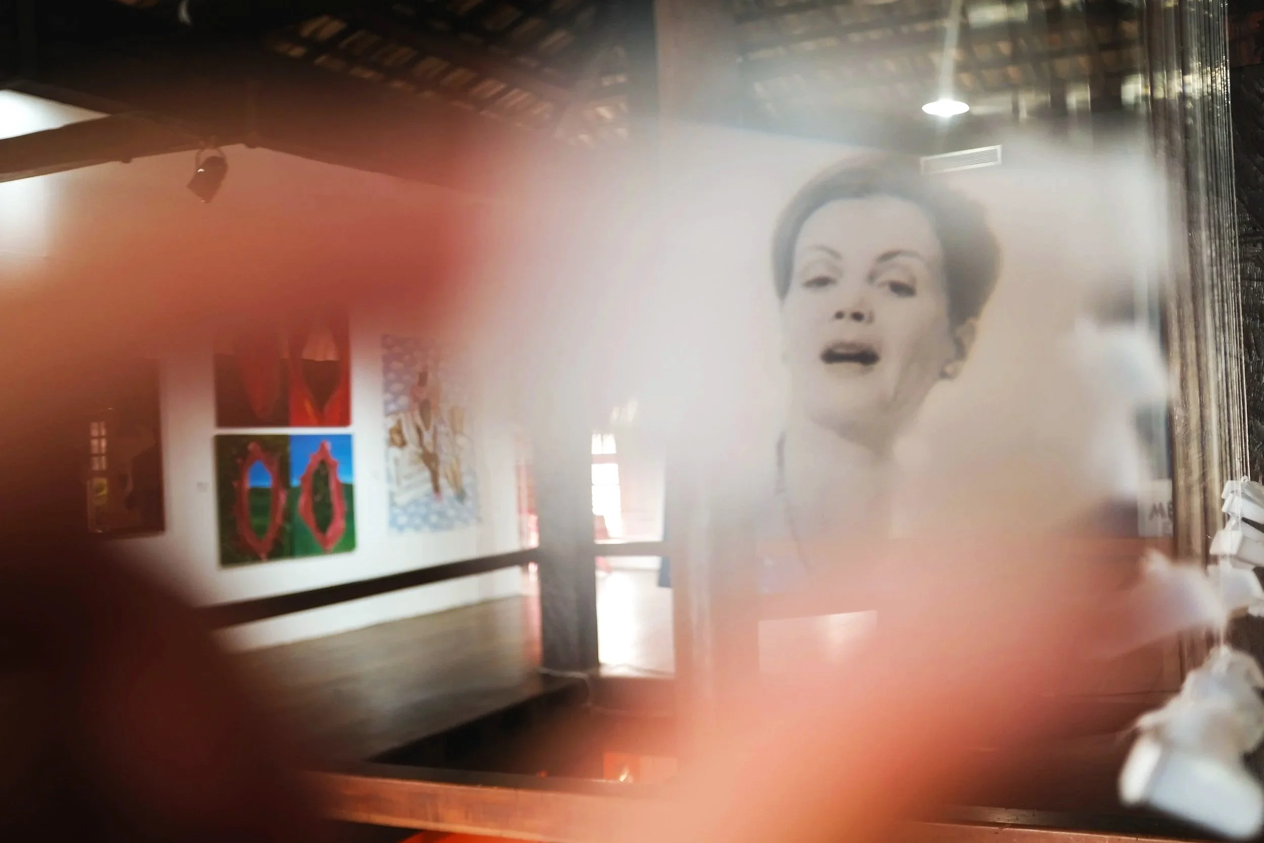 Apropriando-se de fotogramas do filme “O desespero de Veronika Voss” (1982), do cineasta alemão Rainer Werner Fassbinder (1945-1982), o trabalho funciona como uma espécie de “olho mágico”, com os dispositivos óticos ativando a curiosidade e estimulando à intrusão.